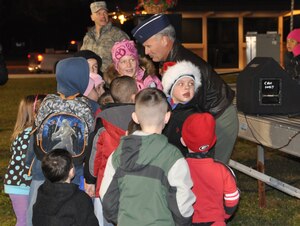 The Tyndall holiday tree was lit Dec. 2 at Flag Park during the annual tree lighting ceremony.Brigadier Gen. James Browne, 325th Fighter Wing commander, made a speech and then gathered with some of the Tyndall children to switch on the lights to the tree, opening the ceremony. "The ceremony was