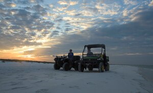 U.S. Air Force Col. Robert M. Brinker, 325th Maintenance Group commander (left), passes the ceremonial guidon to Lt. Col. Justin M. Gilbreth, incoming 325th Aircraft Maintenance Squadron commander (right), during a change of command ceremony at Tyndall Air Force Base, Fla., June 7, 2018. The 325th