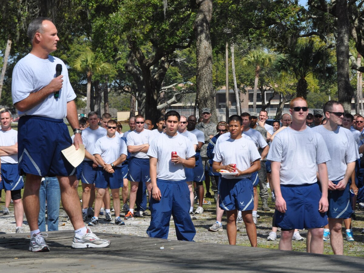 Tyndall Airmen hold Winter Wingman Day 2011 Published March 1, 2011 By Staff Sgt. Kirsten Wicker 325th Fighter Wing Public Affairs TYNDALL AIR FORCE BASE, Fla. -- More than 1,200 Team Tyndall Airmen took part in Winter Wingman Day 2011 Feb. 25 here. The day was set aside to hold discussions, participate in team-building scenarios, run together in a wing formation run, and end the day with a burger burn at Heritage Park. The morning began with unit commander briefings and comments. Then Airmen broke into small groups to discuss this year's theme, resiliency. "We have discussed resilience," said Brig. Gen. James Browne, 325th Fighter Wing commander. "I believe it is the ability to work through any adversity or challenge and be stronger for it." Wingman day gives Airmen a chance to take a break from their work centers and focus on camaraderie, team building and physical fitness. Along with the day's activities, General Browne shared what he believes makes a resilient Airman. First and foremost, understand that what each Airman does is important. "No matter what you do, it is important," said General Browne. "Each of us has a vital role to play and individual actions do impact the mission." "Each of us has a stake in mission accomplishment and that is a huge responsibility," he said. Second, every Airman is part of something bigger than him or herself. "You are part of something bigger than yourself, a family, the Air Force family. As a family, we need to take care of each other," General Browne said. "The wingman concept is all about taking care of each other and it goes hand in hand with resilience." "Nothing can replace human contact and interaction - we must look each other in the eye," he said. General Browne also congratulated the wing on being awarded the Air Force Outstanding Unit award for 2010. "The 325th FW has a proud heritage, steeped in a history of success when facing overwhelming odds," said General Browne. "Today we carry on the legacy. Each of you is now authorized to wear the ribbon if you served in the 325th FW any time between July 2009 and June 2010." Finally, he spoke about two upcoming major events for the wing that will continue to test Airmen's resiliency: 2011 Gulf Coast Salute Open House and Air Show, March 26 and 27, and the Unit Compliance Inspection scheduled for June 2011. "We are well prepared, thank you for your hard work," General Browne said. "We look to make this a safe and successful open house and air show." "Also, last year we set the standard earning an Outstanding rating during the Command Cyber Readiness Inspection," he added. "That is the Checkertail standard, so let's hit another home run during this year's UCI." Winter Wingman Day is held annually every February on Tyndall. The next wingman day will be in the Fall.
