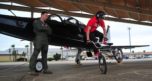 Shake, take, salute and pose for a photo--Tyndall's 2014 March Enlisted Promotion Ceremony was carrying on as usual. I raised my camera, waited for the grip and grin moment and then took the photo of family members tacking on the member's stripes. As I raised my camera, getting ready for the next